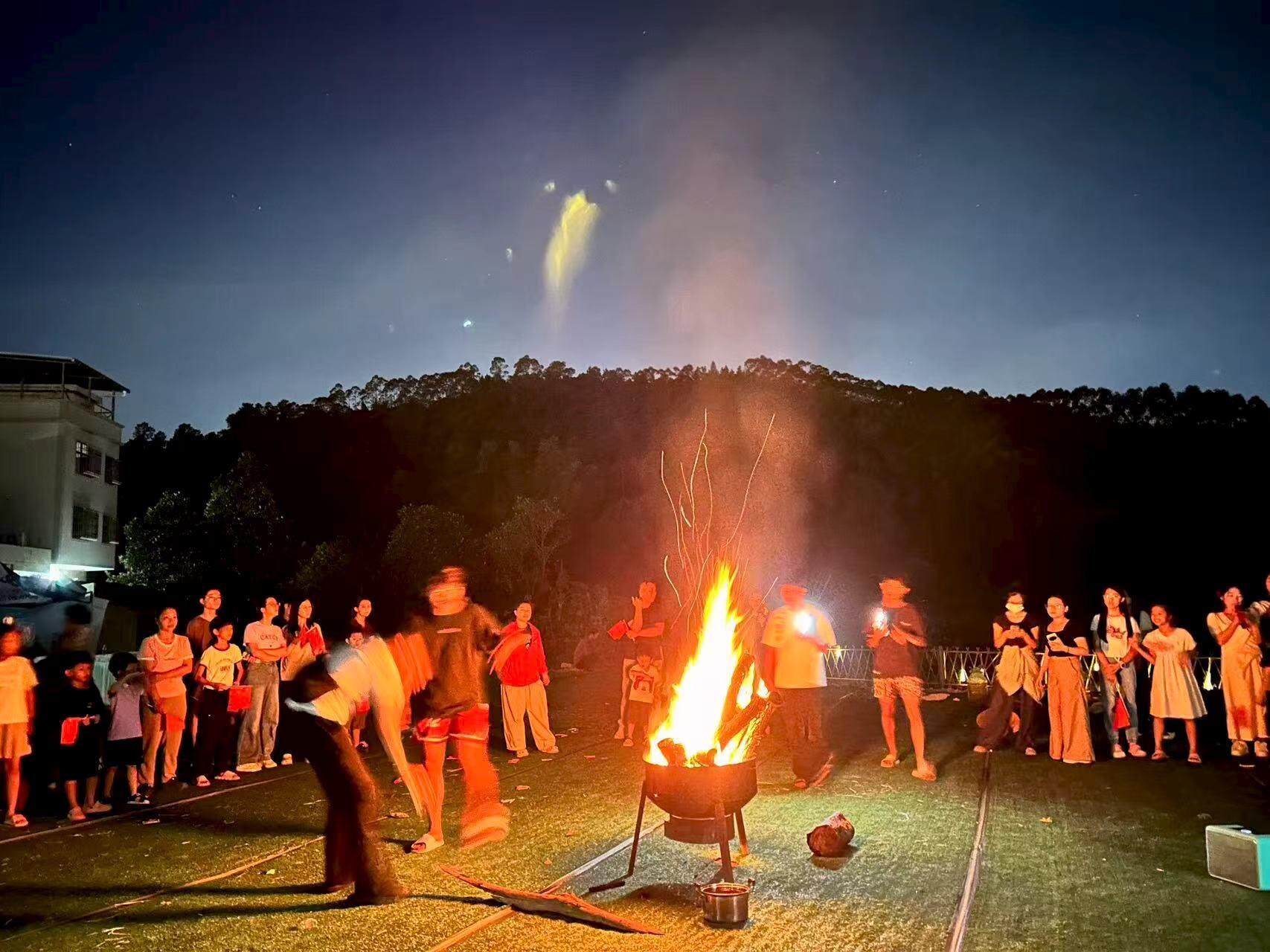 夜幕降临时,水乡广场的篝火燃起跃动的光芒。游客们手拉手围成圆圈,挥舞手中的国旗,在本地民歌传承人的领唱下,学唱传统曲目。年轻游客举着手机记录这暖心时刻,火光映照下的张张笑脸,成为水乡夜空中最动人的风景。这场“峥嵘忆往·情系中华”主题晚会,为水乡的“国庆八天乐”系列活动拉开序幕。